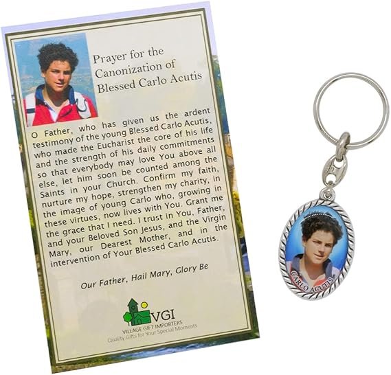 - Devotional Set: Includes a keychain and holy card featuring Blessed Carlo Acutis.